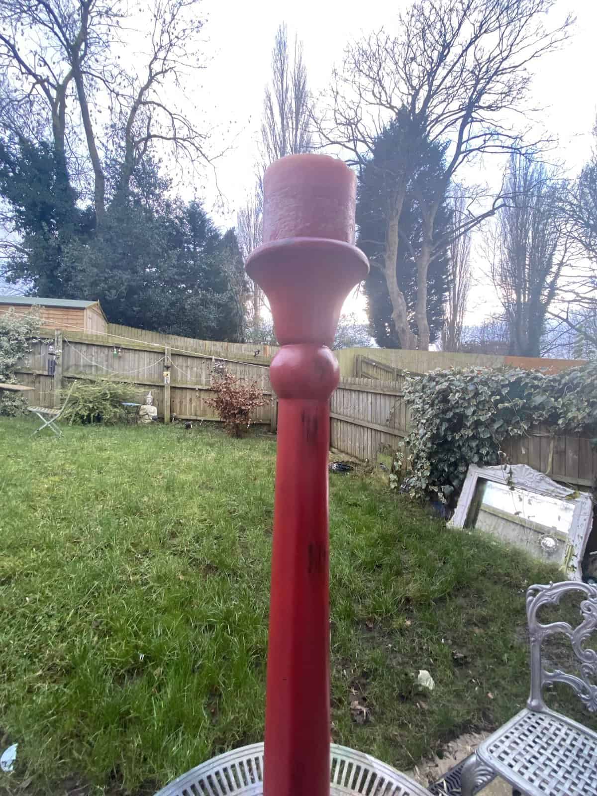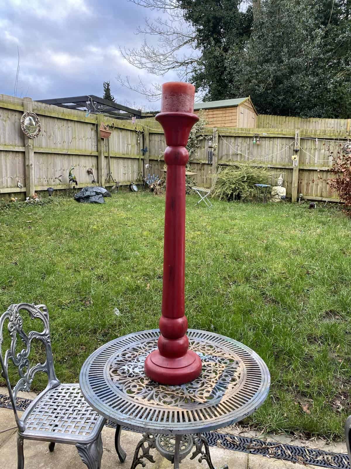 Tall Mid-Century Modern Turned Wood Red Finish candle holder complete with red large candle